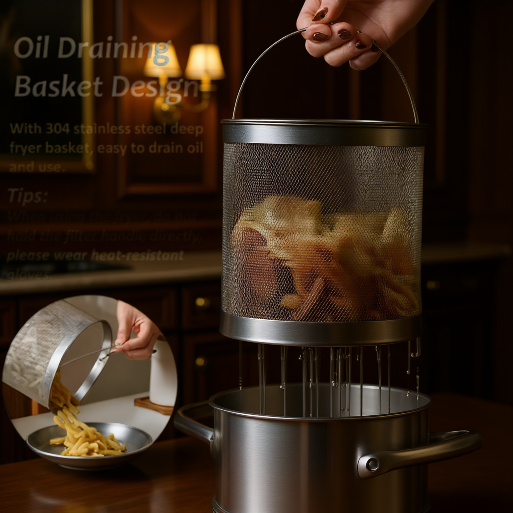 ✅ Includes Stainless Steel Mesh Basket + Lid – fry safely and efficiently.