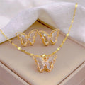 Delicate micro-pavé butterflies dance gracefully on the necklace and earrings, symbolising transformation, freedom, and femininity. Each piece has been meticulously designed to capture the essence of understated European luxury.